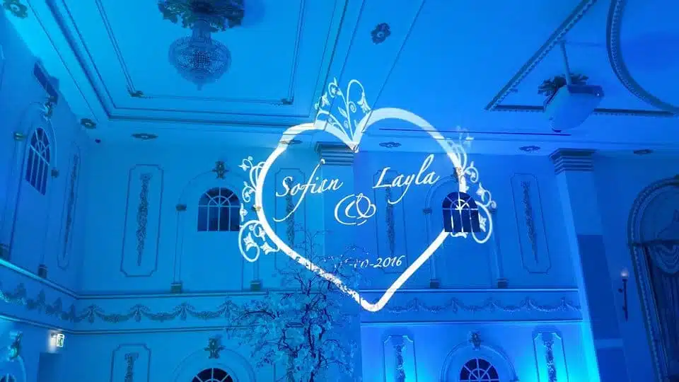 Als het aan jou ligt, schreeuw je de naam van jouw liefje over de daken. BASMA Weddings helpt je graag om de naam van jouw kersverse partner direct in de oren en ogen van de gasten te knopen. Door middel van projectie is het mogelijk om in een hartvorm de namen van het bruidspaar op de wand te projecteren. Een echte eyecatcher dus.