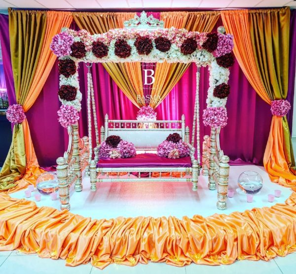 Bollywood is een samentrekking van Hollywood en Bombay, de vroegere naam van Mumbai. In de films staat het ontsnappen aan de dagelijkse sleur, het escapisme, centraal. Een prachtige bruidspaar en Bollywood waren inspiratie voor deze bijzonder bruidstage. Dit is de variant met zijden bloemen. Kleur kun je zelf bepalen.